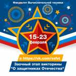На ФВТ стартует викторина «О защитниках Отечества». В преддверии Дня защитника Отечества на факультете вычислительной техники состоится викторина...