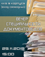 25.11.2019 22:34 Приглашаем преподавателей, студентов, родителей на Вечер специальности документоведов!